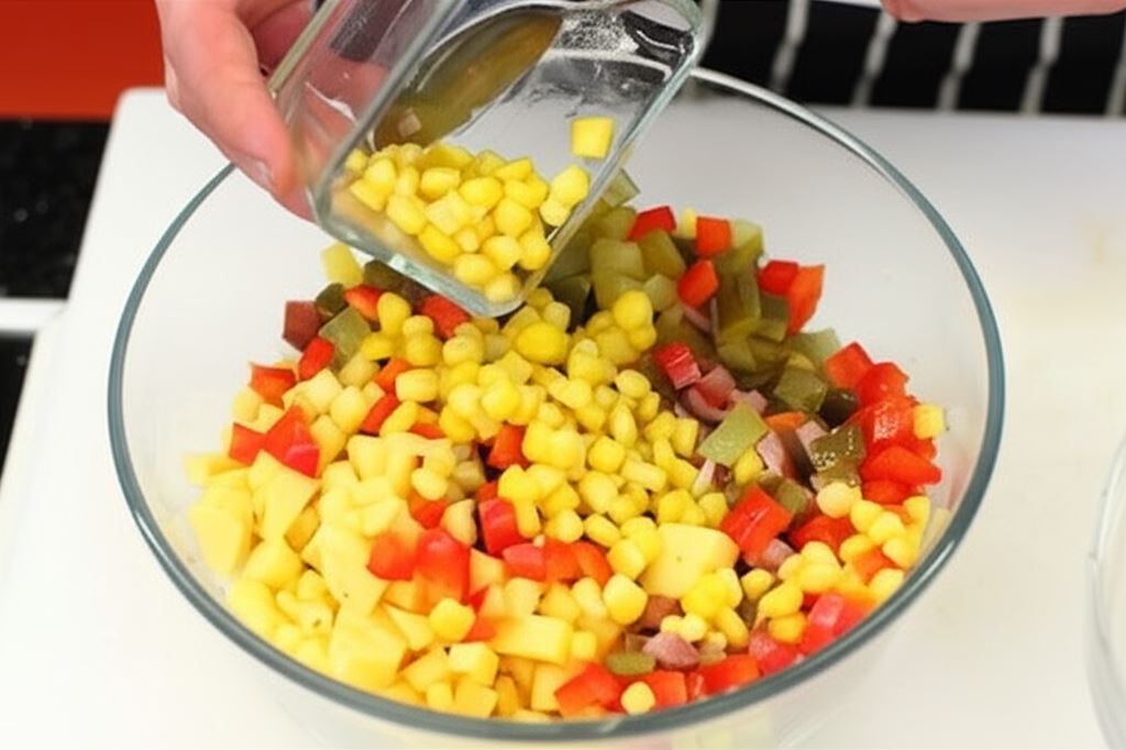 Dorzuć także kukurydzę odcedzoną z zalewy.