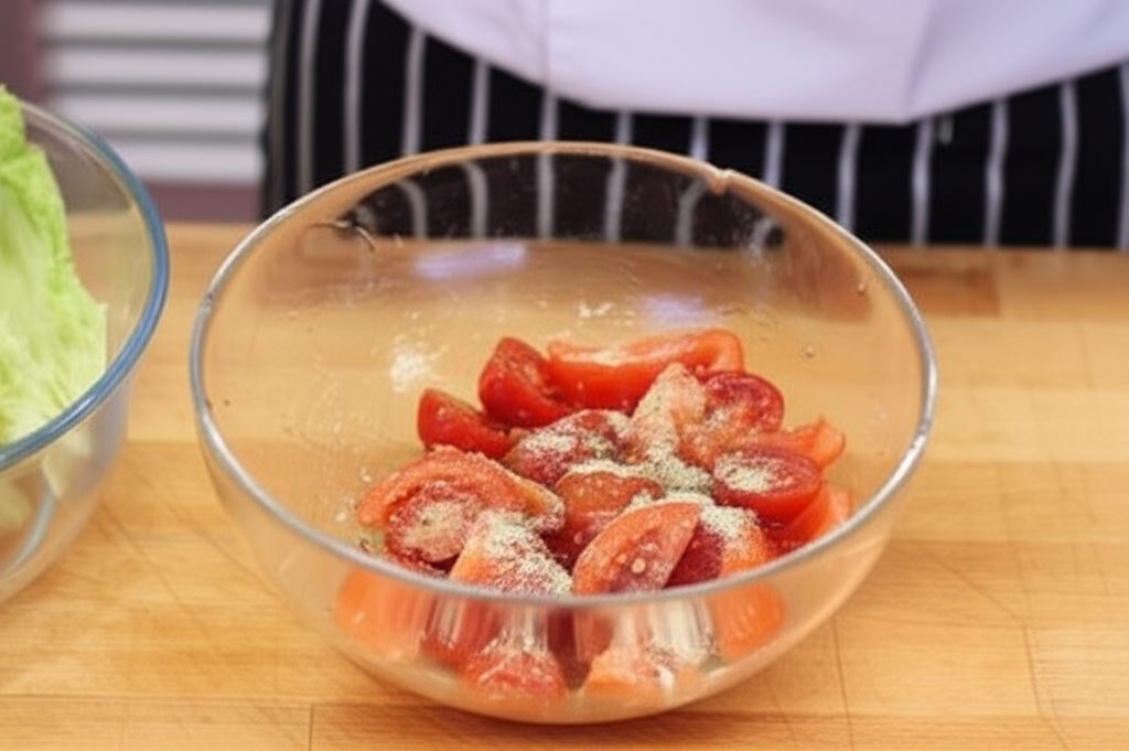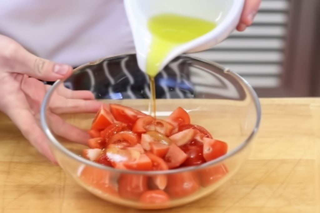 Pomidory najlepiej smakują w temperaturze pokojowej – wtedy ich aromat jest najbardziej intensywny. Dlatego warto wyjąć je z lodówki na około 30 minut przed przygotowaniem sałatki. Dodatek szczypty cukru wydobywa naturalną słodycz pomidorów i równoważy ich kwasowość.