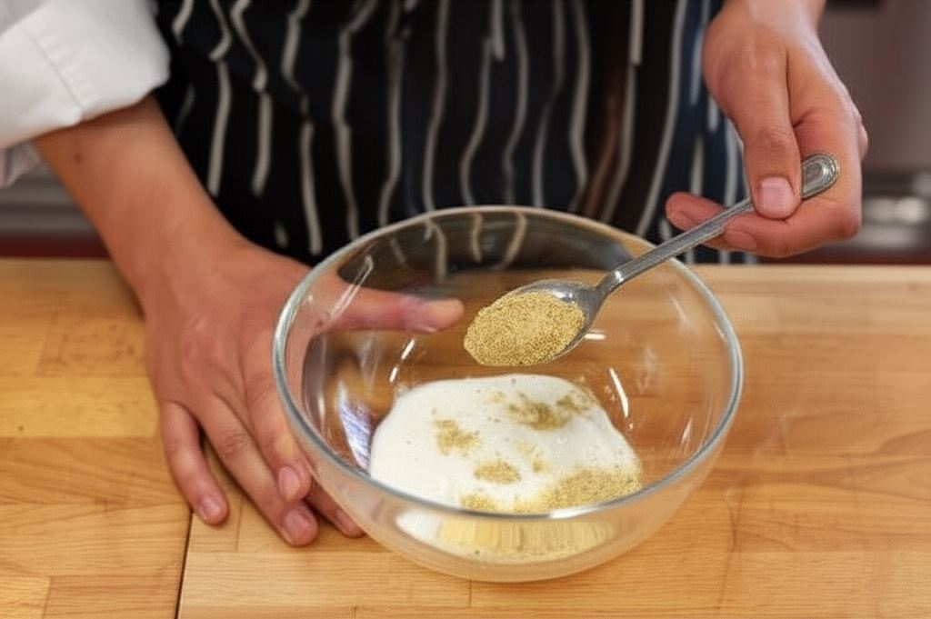 Sporządź aromatyczny, ziołowy sos łącząc jogurt z sosem sałatkowym Knorr.