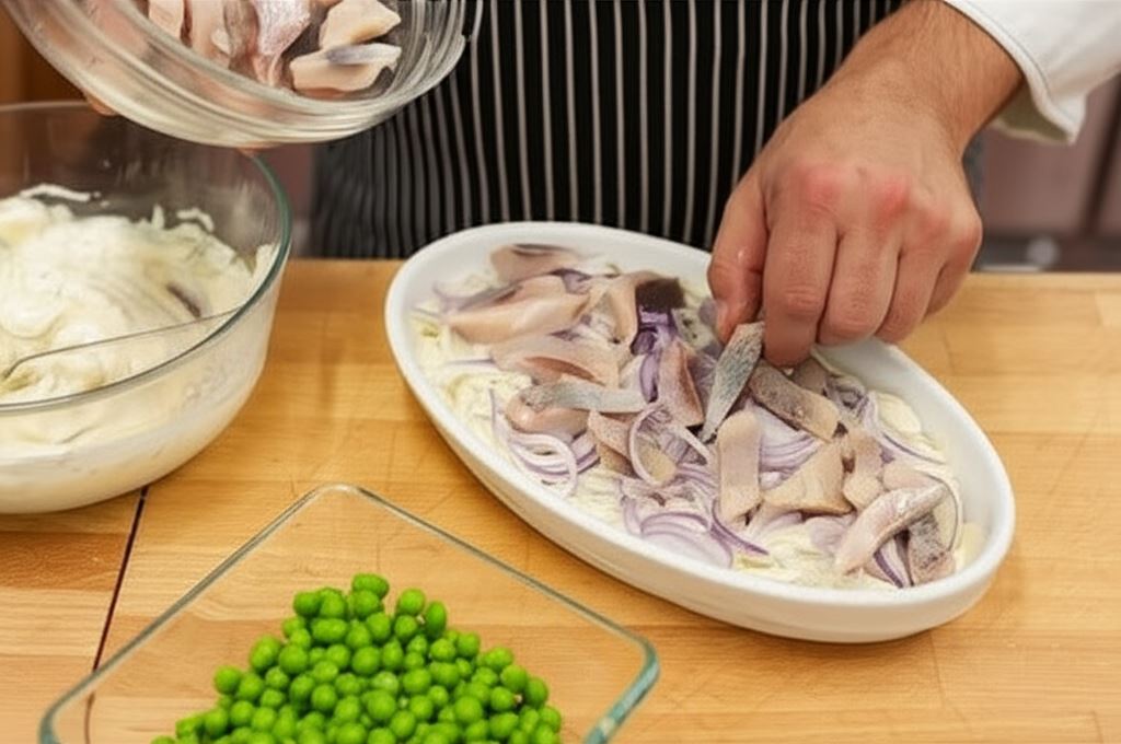Delikatne filety śledziowe w towarzystwie kremowych ziemniaków tworzą duet, któremu trudno się oprzeć. Ta tradycyjna sałatka to prawdziwa uczta dla podniebienia – soczyste kawałki śledzia typu matias, aromatyczna cebula i aksamitny sos majonezowy z nutą koperku i cytryny tworzą harmonijną kompozycję smaków. Warstwowe ułożenie składników nie tylko pięknie się prezentuje, ale pozwala też każdemu składnikowi zachować swój wyjątkowy charakter.