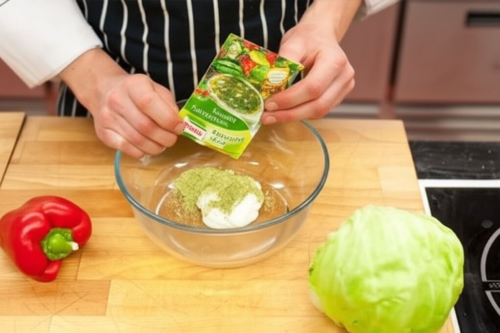 Sekret wyjątkowego smaku tej sałatki tkwi w odpowiednim przygotowaniu dressingu. Połączenie sosu sałatkowego z jogurtem nadaje mu kremowej konsystencji, a dodatek ziół podkreśla świeżość całego dania. Czerwona cebula dodana na wierzch nie tylko wzbogaca smak, ale również dodaje sałatce wyrazistości i koloru.
