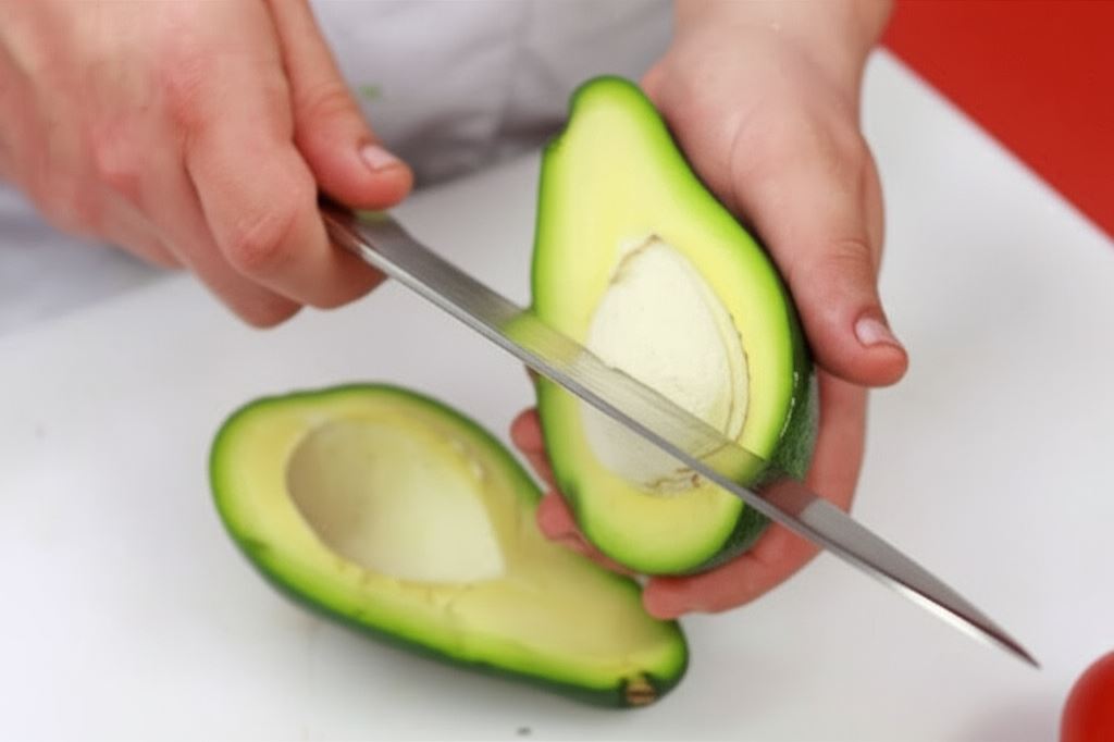 Awokado przetnij na połowę, usuń z niego pestkę i przy użyciu łyżki ostrożnie wyciągnij miąższ, aby nie uszkodzić skórki. Potem skrop je sokiem z cytryny, by nie ciemniało.