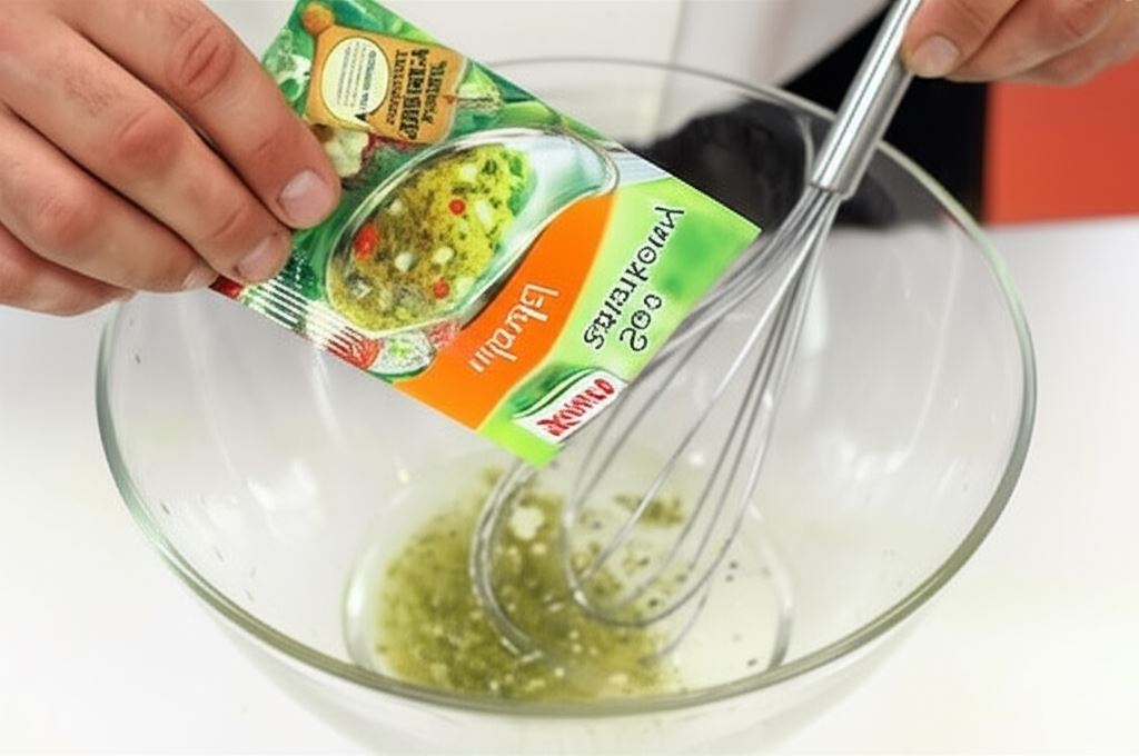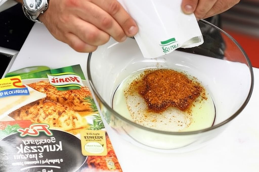 Przyprawę Knorr połącz z 3 łyżkami oliwy i 1 łyżką wody.