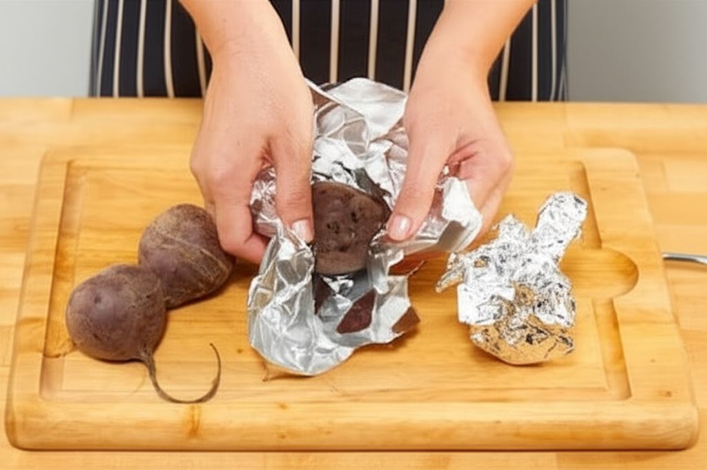 Buraki zyskują wyjątkową słodycz podczas pieczenia w folii aluminiowej. Aby wzmocnić ich smak, warto przed pieczeniem skropić je oliwą i octem balsamicznym. Taki zabieg nada im głębszego, bardziej wyrazistego aromatu, który doskonale komponuje się z orzechowym posmakiem prażonych orzechów włoskich.