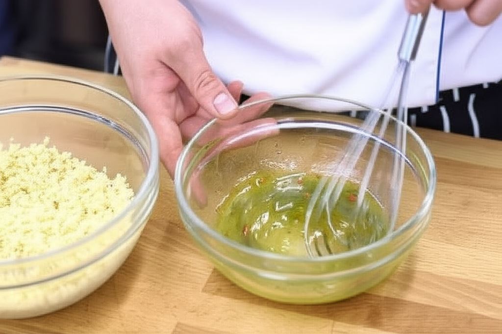 Przygotuj aromatyczny paprykowo - ziołowy sos łącząc zawartość opakowania Knorr z 3 łyżkami wody oraz 3 łyżkami oliwy.