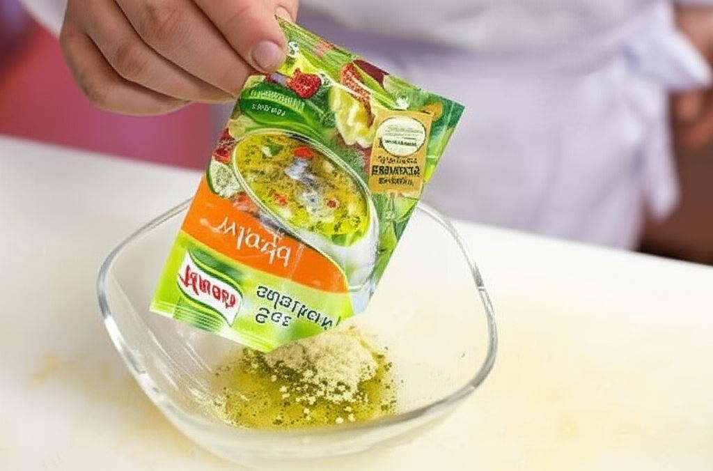Sos sałatkowy Knorr połącz z 3 łyżkami wody oraz 3 łyżkami oliwy.