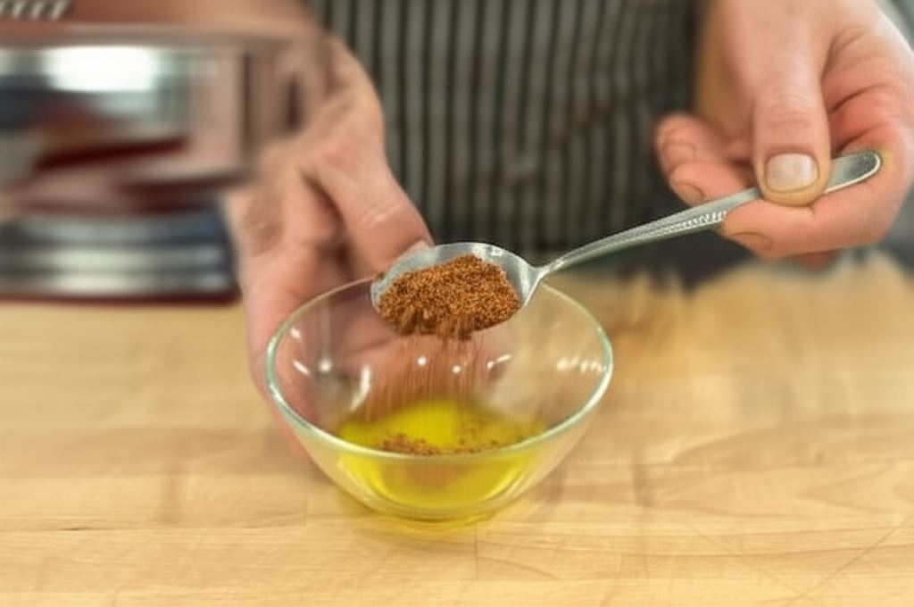 W misce przygotuj sos - połącz sok z limonki, sos sałatkowy oraz oliwę.