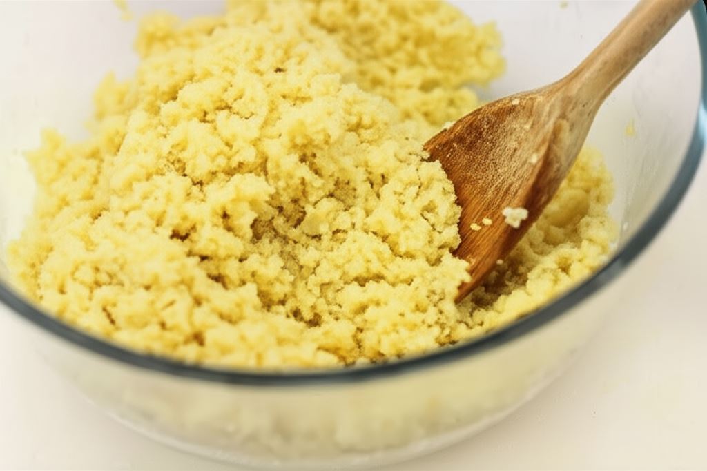Doprowadź bulion do wrzenia i zalej nim kuskus. Nakryj i pozostaw na 1 minutę. Po upływie tego czasu przełóż ugotowany kuskus do miski i wymieszaj drewnianą łyżką, aby zapobiec tworzeniu się grudek.