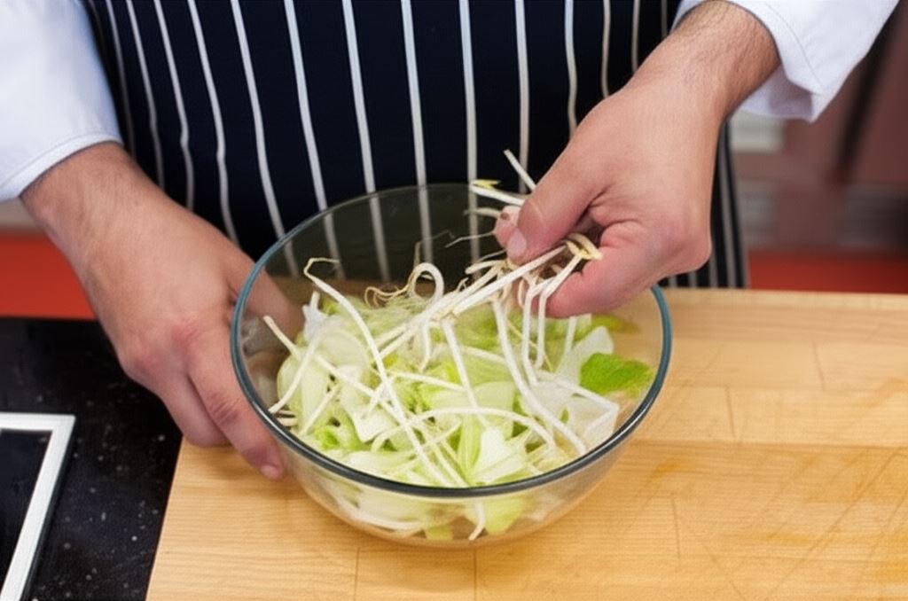 Możesz eksperymentować z różnymi rodzajami kiełków – spróbuj kiełków rzodkiewki, lucerny lub brokułu. Sałatkę możesz wzbogacić o awokado, orzechy lub ser feta. Zamiast bagietki podaj ją z chlebem na zakwasie lub pełnoziarnistymi grzankami.