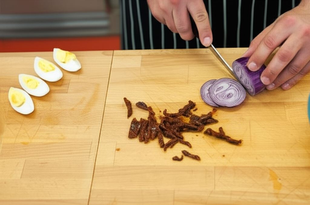 Odkryj naszą wyjątkową sałatkę z jajkiem i kiełkami słonecznika – doskonałe połączenie delikatności i chrupkości w jednym daniu! Krucha sałata stanowi bazę dla aromatycznych dodatków: jajek ugotowanych na twardo, soczystych pomidorów suszonych, cienko pokrojonej czerwonej cebuli oraz chrupiących kiełków. Całość skropiona jest wybornym sosem ziołowym z nutą papryki, który przygotujesz w mgnieniu oka z przyprawy Knorr, wody i aromatycznego oleju z suszonych pomidorów.