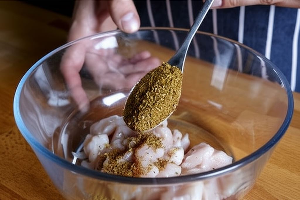Kurczęcą pierś pokrój w kostkę i przyprawą Knorr posyp. Wymieszaj dokładnie.