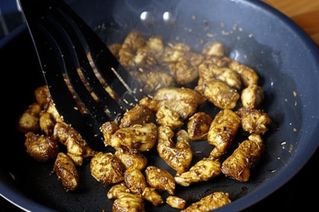 Potem smaż na oleju dopóki mięso stanie się soczyste i będzie gotowe.