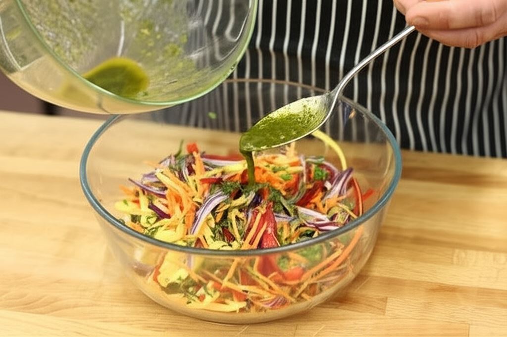 Jeśli nie przepadasz za krewetkami, możesz zastąpić je grillowaną piersią z kurczaka lub, w wersji wegetariańskiej, smażonym serem tofu. Eksperymentuj z dodatkami – spróbuj dodać awokado, edamame lub kiełki fasoli mung. Dla bardziej pikantnej wersji wzbogać dressing o posiekane chili lub sos sriracha.