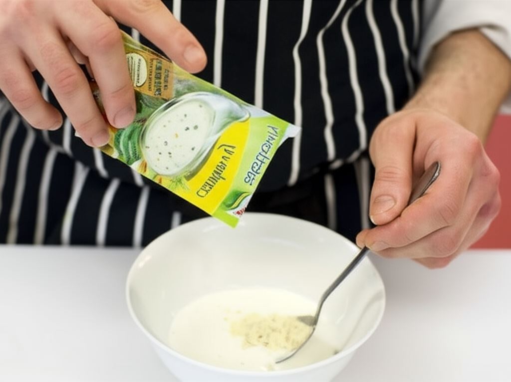 Sos Knorr połącz z jogurtem, majonezem i curry. Wsyp posiekaną pietruszkę.