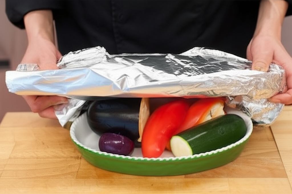 Warzywa włóż do żaroodpornego naczynia i piecz 30 minut w temperaturze 180 °C. Pozostaw do wystygnięcia.