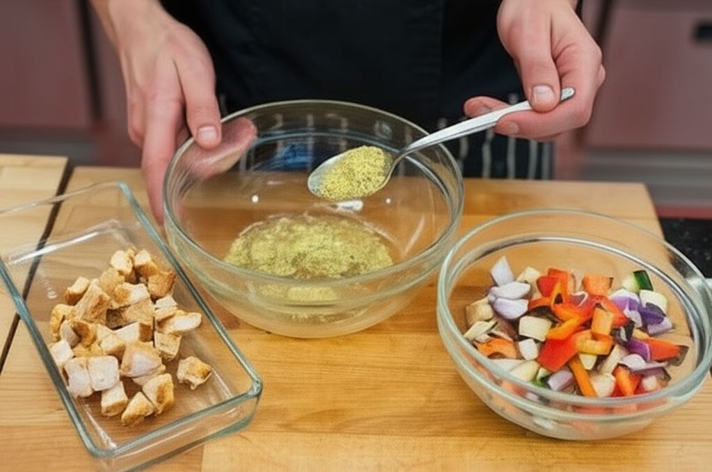 Klasyczna sałatka grecka zyskuje nowy wymiar dzięki dodatkom soczystego kurczaka i aromatycznych przypraw. Delikatne mięso drobiowe, upieczone warzywa i kremowy ser feta tworzą harmonijną kompozycję smaków, która przeniesie Cię wprost na słoneczne wybrzeże Morza Egejskiego. Sos na bazie Knorr doskonale łączy wszystkie składniki, nadając potrawie wyrazisty, śródziemnomorski charakter.