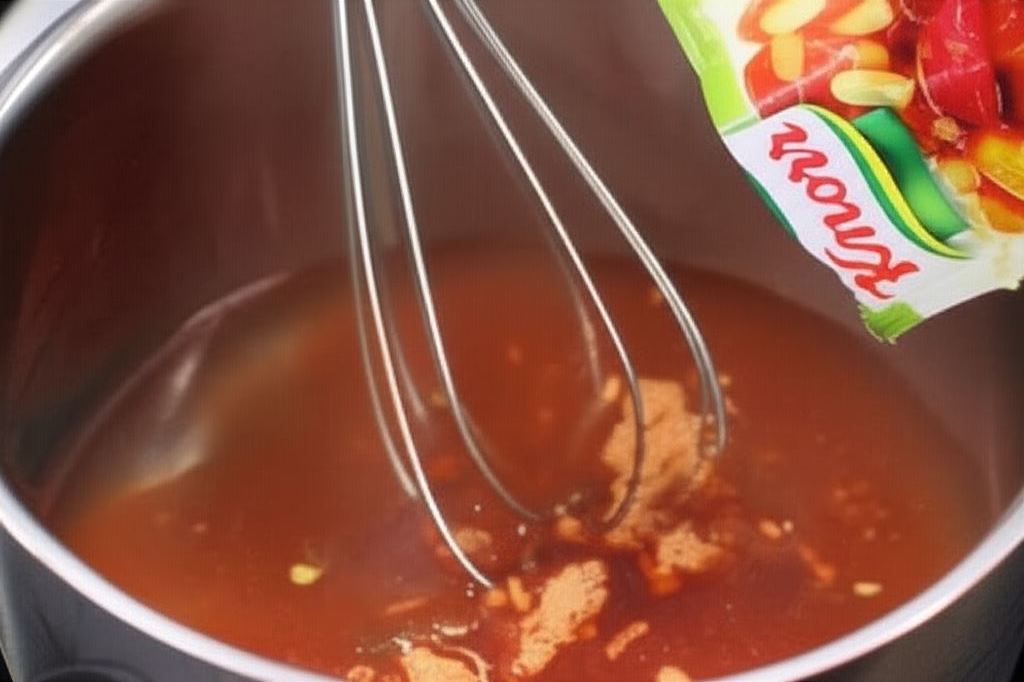 Kostkę Knorr zagotuj z jedną szklanką gorącej wody, dokładnie zamieszaj i odstaw do wystygnięcia
