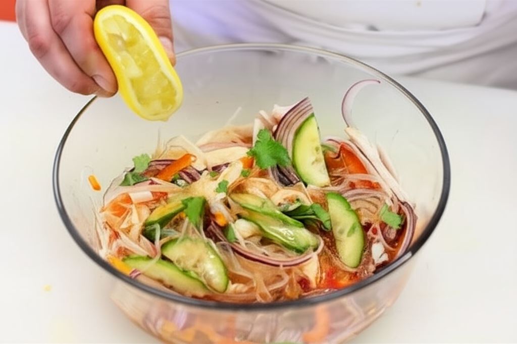 Aby nadać sałatce jeszcze więcej świeżości, skrop ją dodatkowo sokiem z limonki. Możesz też eksperymentować z dodatkami – garść prażonych orzechów ziemnych lub sezamu doda przyjemnej chrupkości, a świeża mięta lub bazylia tajska wzbogaci aromat.