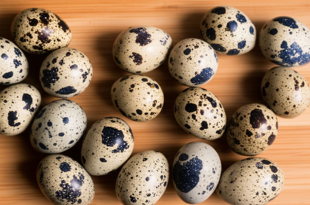Jajka przepiórcze gotuj w osolonej wodzie przez 3 minuty, potem schłodź w zimnej wodzie i obierz. Przekrój na połówki.