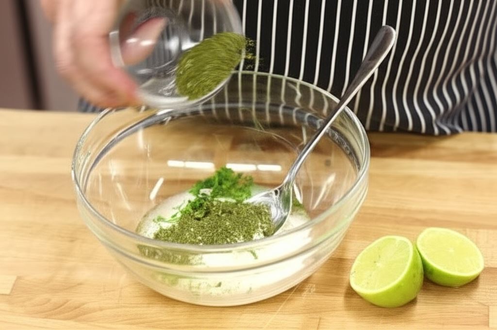 Sporządź sos – w miseczce wymieszaj jogurt, posiekaną drobno miętę oraz sok z limonki. Wsyp zawartość opakowania Knorr i połącz składniki.
