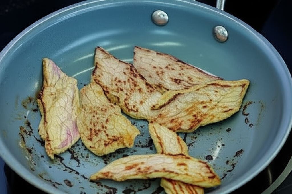 Odłóż mięso na około 30 minut, następnie odsącz i smaż bez tłuszczu na patelni teflonowej. Odłóż do ostygnięcia.