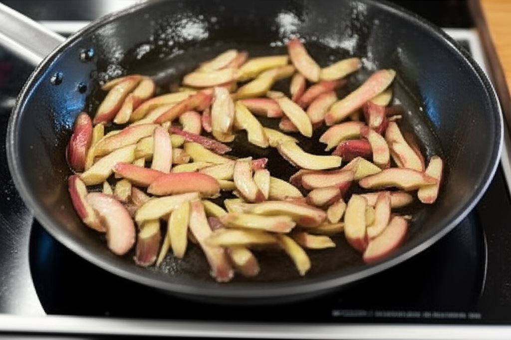 Rabarbar potnij na drobniejsze części i wsyp na wciąż ciepłą patelnię, na której smażyłeś mięso. Ogrzewaj przez 1 minutę i przenieś do miski.