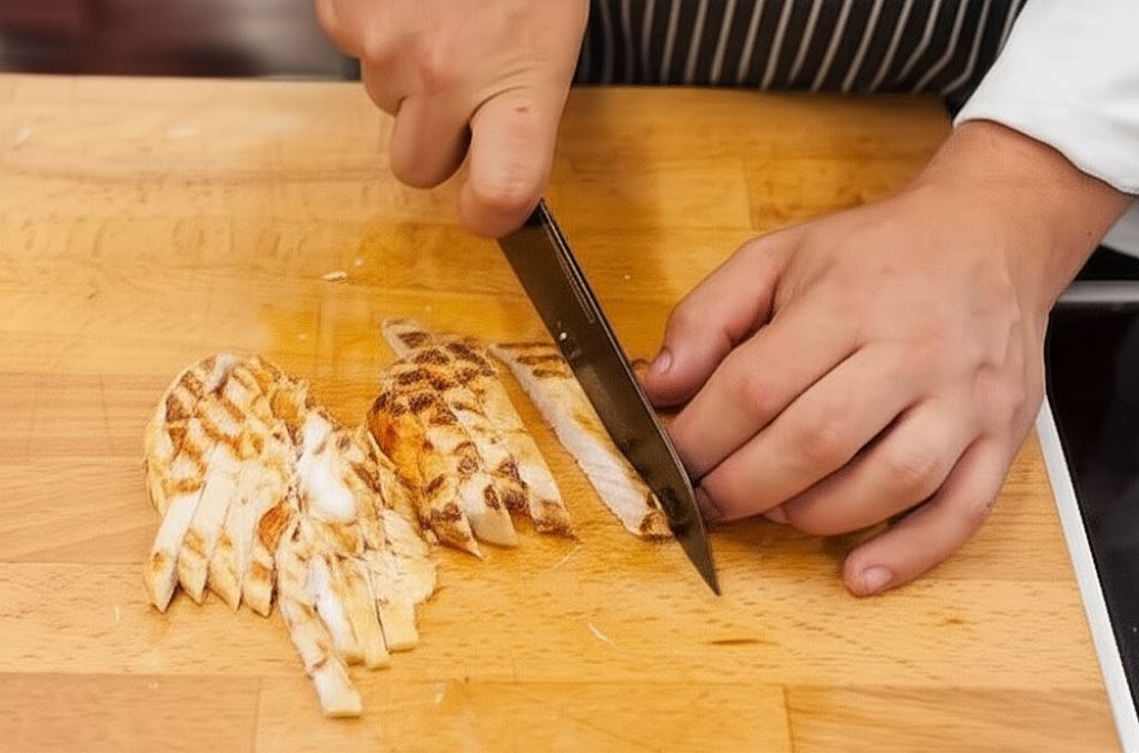Mięso potnij w paski i serwuj z sałatką.