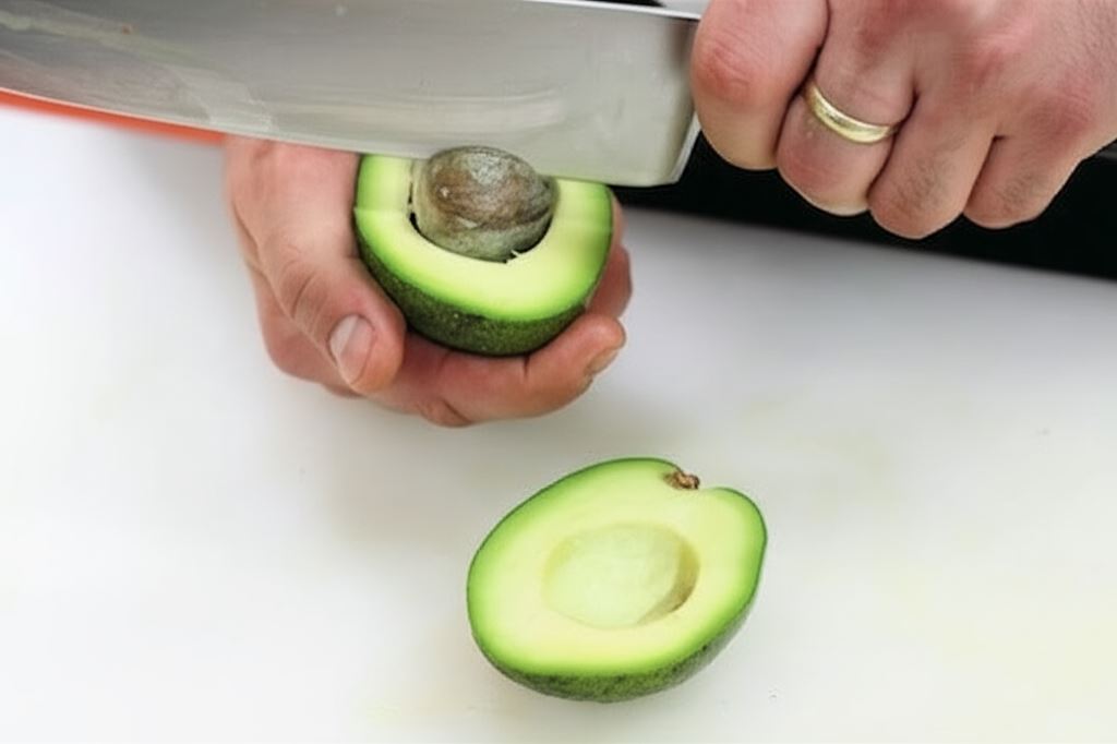Awokado najłatwiej obrać, przekrawając je na pół wokół pestki, a następnie przekręcając połówki w przeciwnych kierunkach. Pestkę można łatwo usunąć, wbijając w nią ostrze noża i delikatnie przekręcając. Wybieraj awokado, które pod lekkim naciskiem ustępuje – będzie idealnie dojrzałe i kremowe.