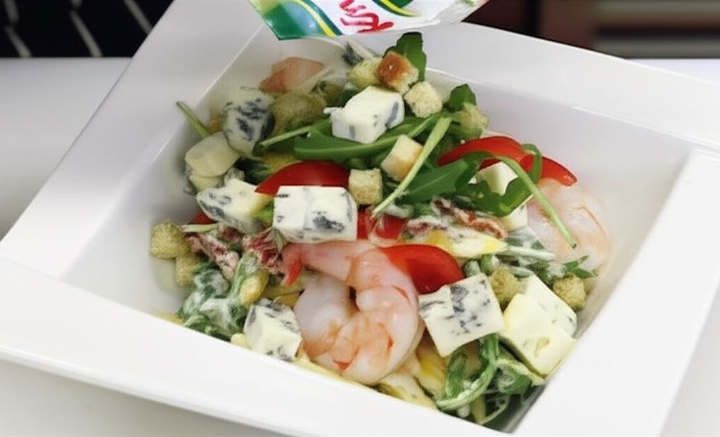 Krewetki, mimo delikatnego smaku, doskonale komponują się z intensywnymi dodatkami. Ich subtelny, lekko rybny posmak najlepiej podkreślają słodkie owoce, zwłaszcza egzotyczne jak mango czy ananas. Dodatek sera pleśniowego wprowadza do sałatki głębię smaku, a chrupiące orzeszki piniowe i grzanki zapewniają różnorodność tekstur.