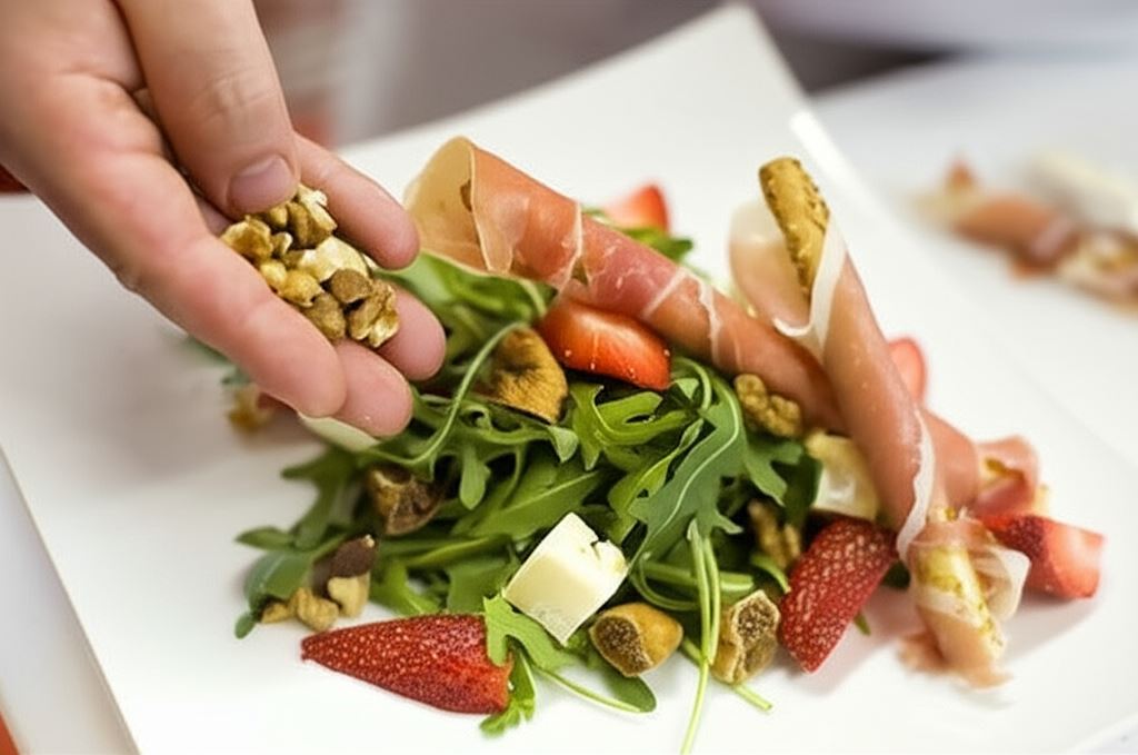 Sałatka z rukoli z truskawkami – kompozycja smaków na eleganckim talerzu