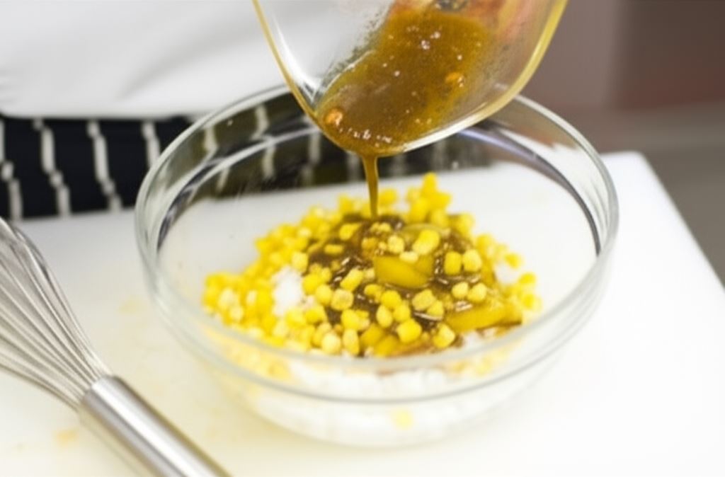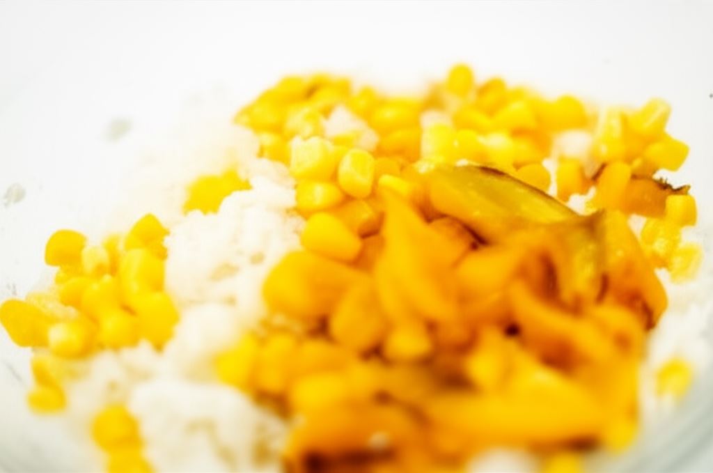 Upieczoną paprykę posiekaj drobno i razem z odcedzoną kukurydzą wsyp do ryżu.