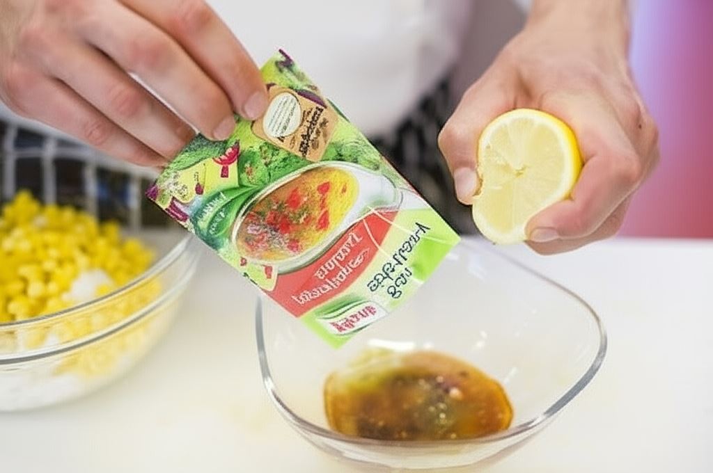 Sos sałatkowy Knorr połącz z resztą oliwy, słodką i ostrą papryką oraz sokiem z cytryny.
