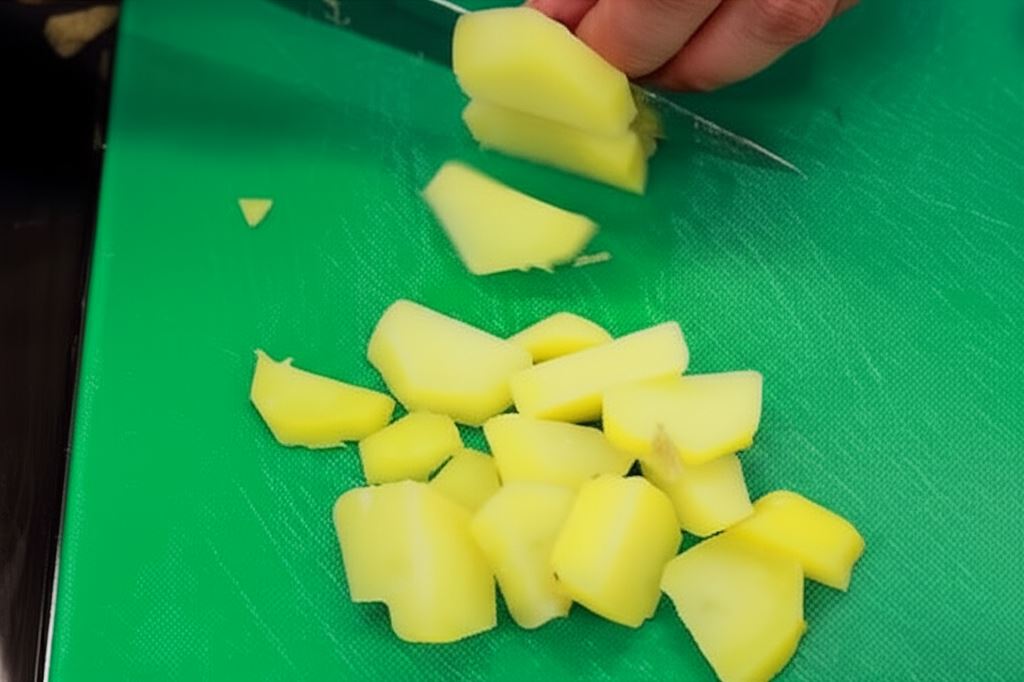 Ziemniaki dokładnie wyszoruj i wrzuć do osolonego wrzątku. Gotuj je aż będą miękkie (około 8 minut), a następnie ostudź.
