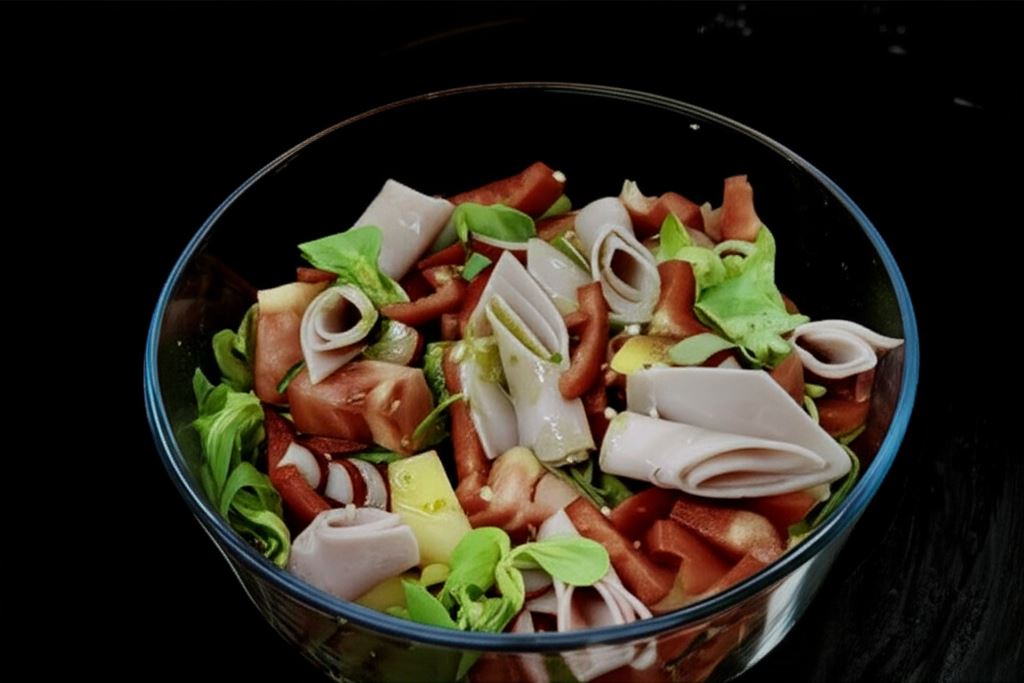 Ta lekka kompozycja to idealna propozycja dla osób dbających o zdrowie i ceniących naturalne składniki. Bogactwo witamin i minerałów zawartych w świeżych warzywach sprawia, że sałatka doskonale wpisuje się w zbilansowaną dietę. Dodatek szynki zapewnia porcję białka, czyniąc danie bardziej sycącym.