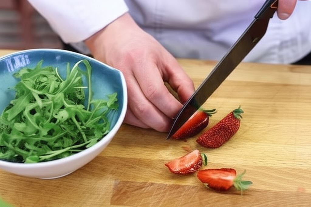 Rukola, będąca bazą tej sałatki, najlepiej smakuje, gdy jest świeża – nawet lekko zwiędnięta staje się nieprzyjemnie gorzka. Jej wyrazisty, lekko orzechowy smak stanowi doskonałe tło dla słodko-kwaśnych truskawek i łagodnej mozzarelli.