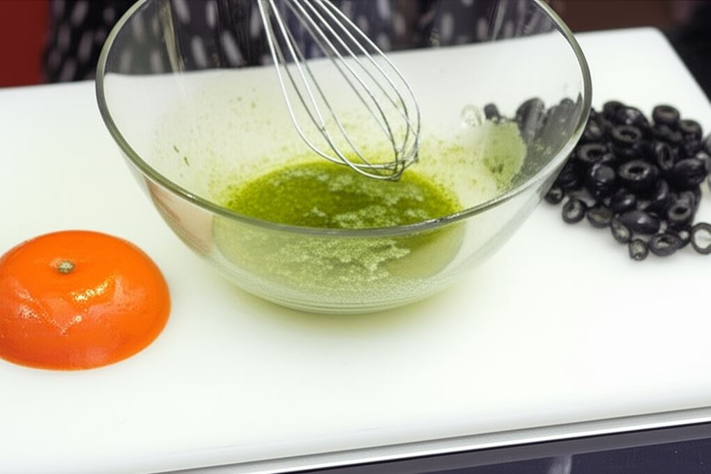 Sos sałatkowy Knorr połącz z trzema łyżkami wody i oliwą z oliwek.