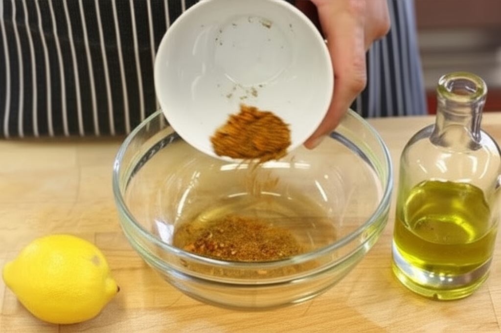 Sporządź sos sałatkowy – zawartość saszetki Knorr wymieszaj w miseczce z oliwą (3 łyżki) i sokiem z cytryny. Zamieszaj.