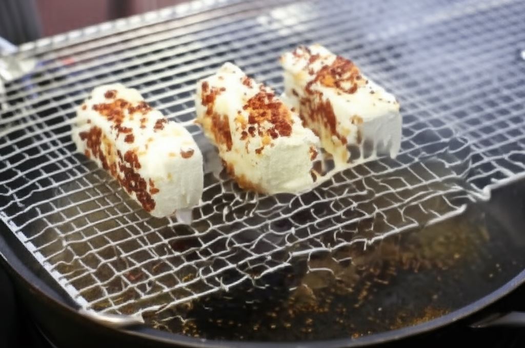 Twaróg potnij na grube plastry (około 2 cm), posmaruj delikatnie oliwą i oprósz pozostałą Przyprawą Smokey Knorr po obu stronach.