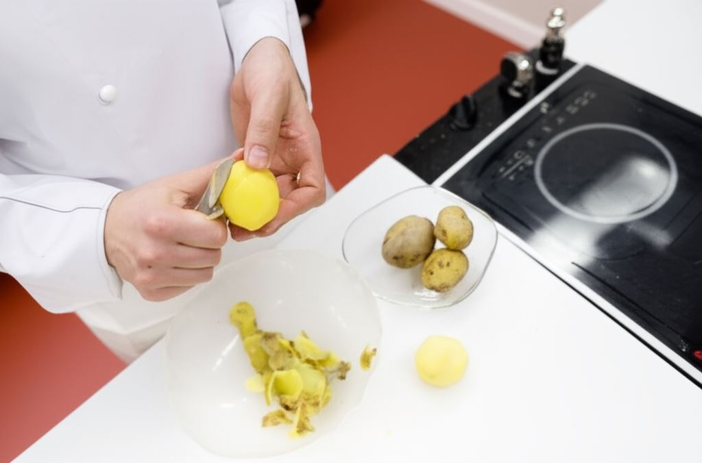 Ugotuj ziemniaki w mundurkach. Ostudź, potem obierz i pokrój na cienkie plastry.