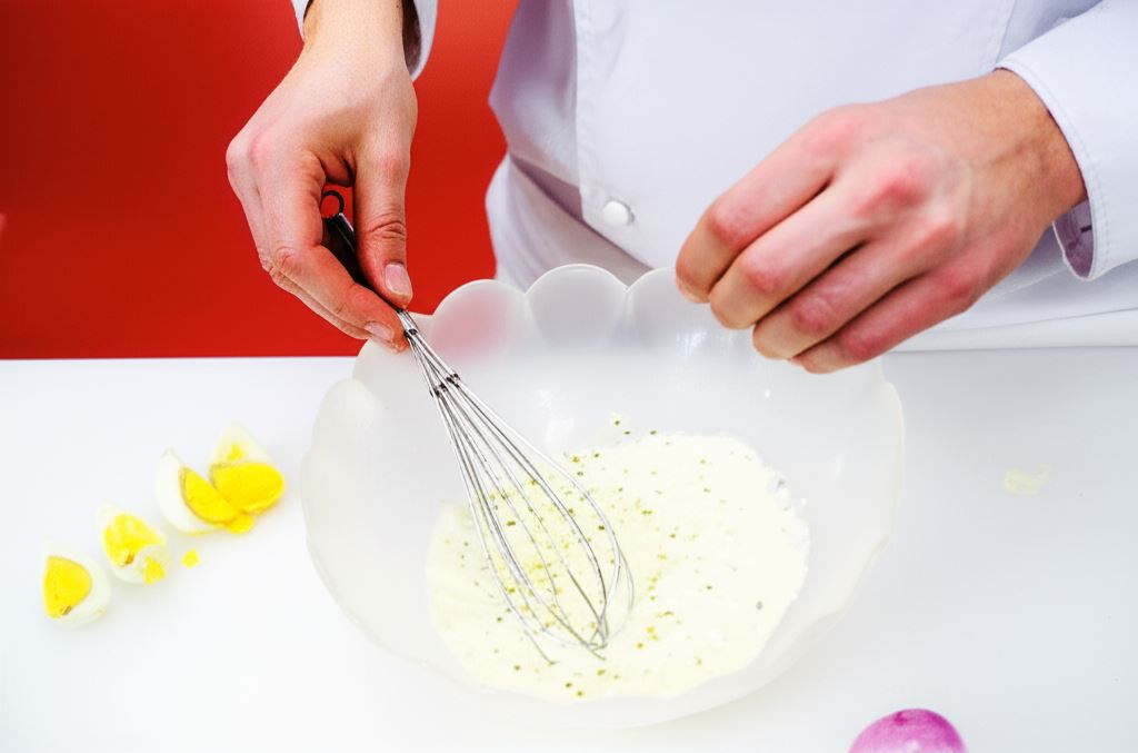 Sporządź sos sałatkowy Knorr zgodnie z instrukcją na opakowaniu, mieszając go z jogurtem. Polej nim sałatkę i ostrożnie zamieszaj.