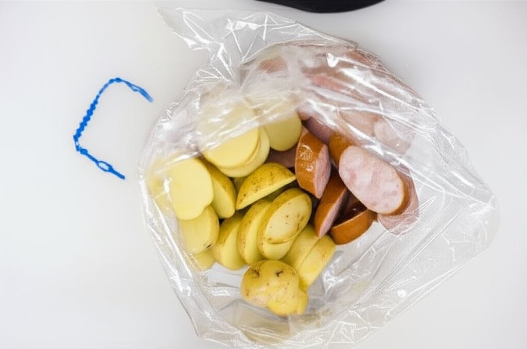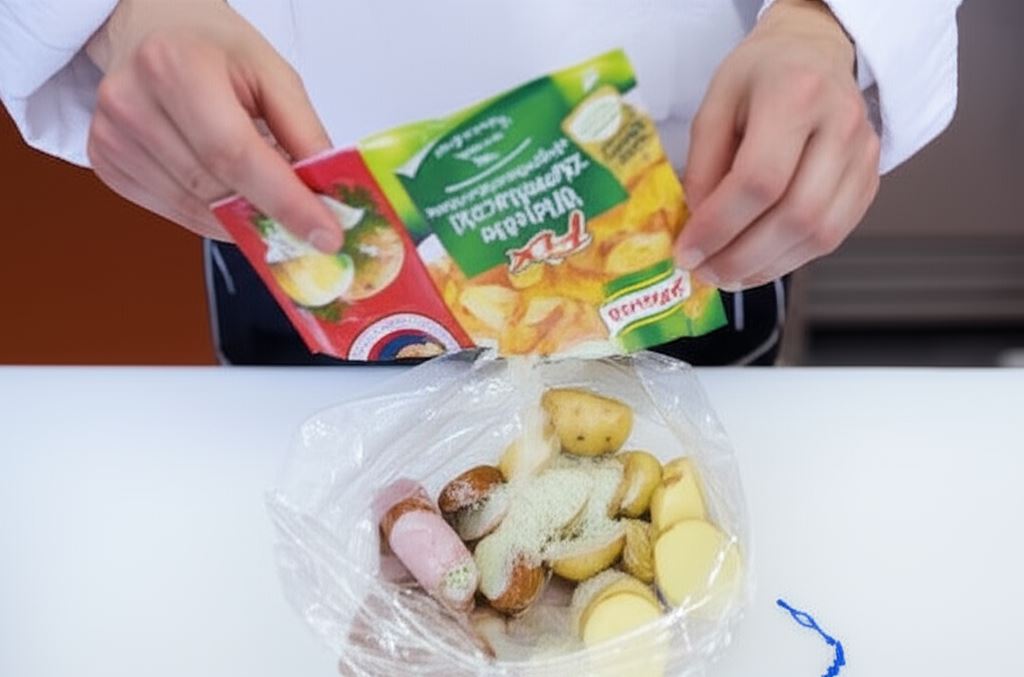 Włóż kiełbasę razem z ziemniakami do woreczka z opakowania Fix Knorr.