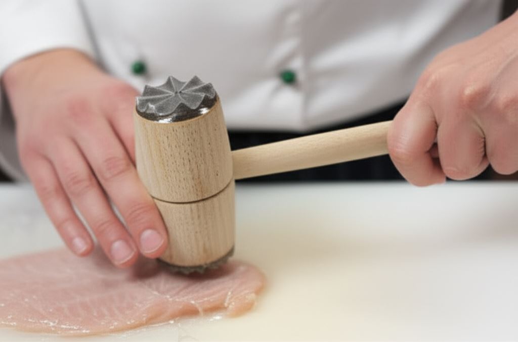Mięso oczyść z błonek, potem delikatnie rozbij tłuczkiem, aby jego grubość nie przekraczała 2 cm.