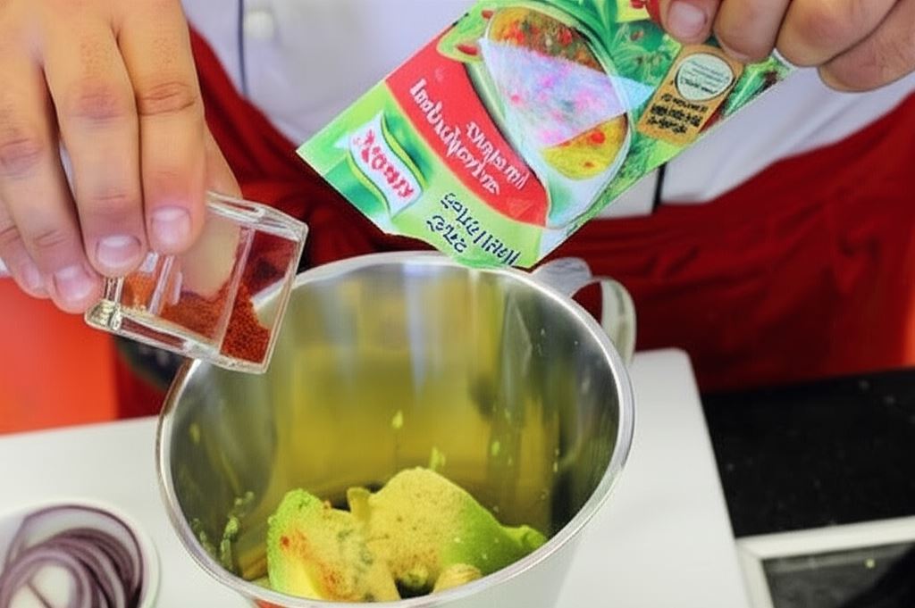 Obierz awokado, wyciągnij pestkę i miąższ, umieść w mikserze. Wlej sok z cytryny, dodaj oliwę, pieprz cayenne oraz sos Knorr. Zmiksuj wszystko dokładnie.