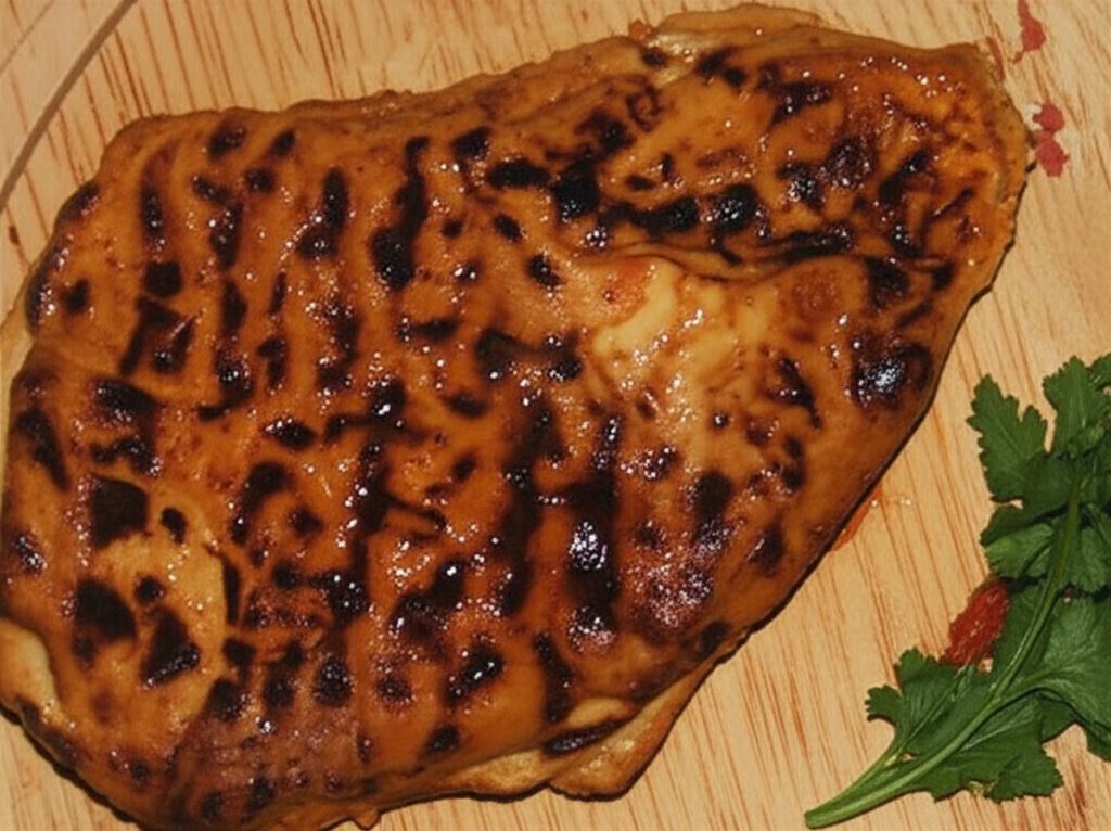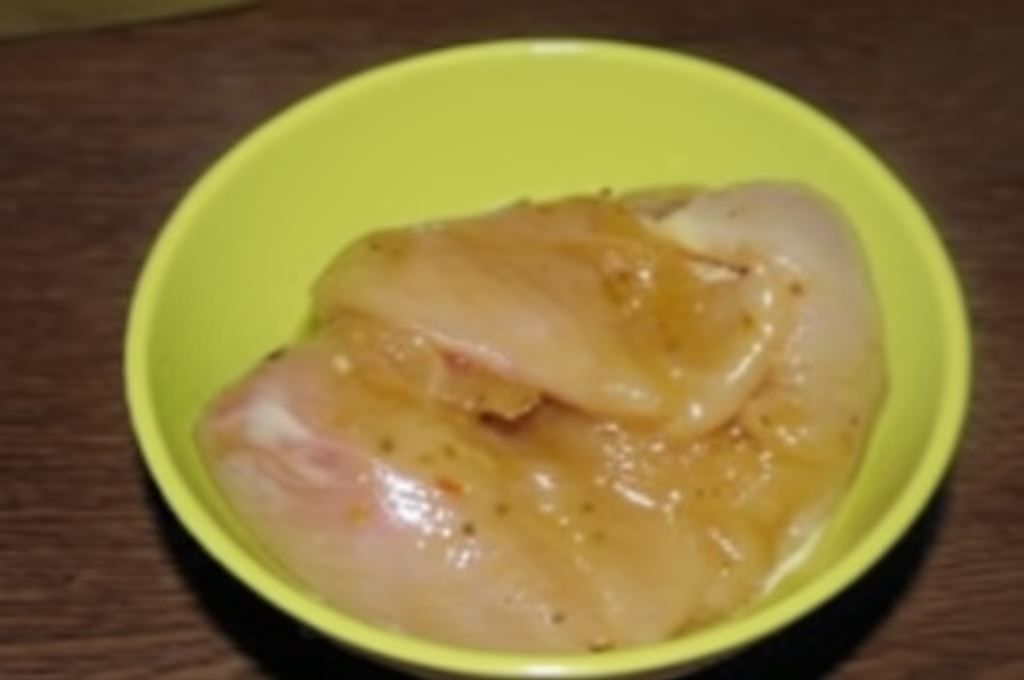 Posmarować nią starannie pierś kurczaka. Odstawić na 30 minut aby mięso nasiąkło marynatą.
