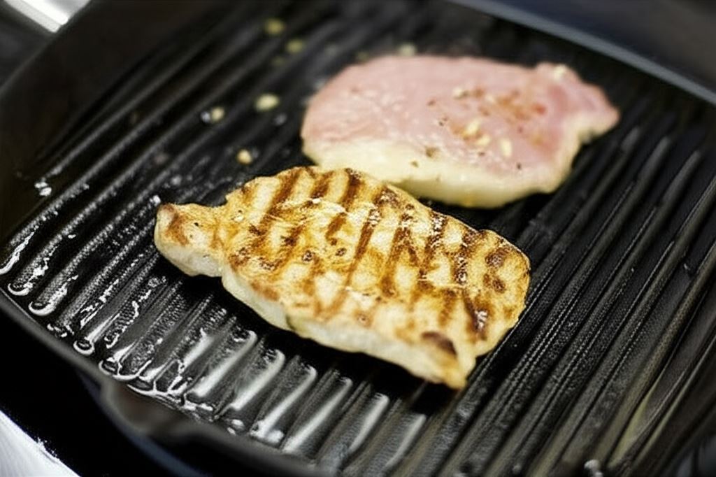Po upływie tego czasu grilluj schab przez 3-4 minuty z każdej strony, aby zachował soczystość.
