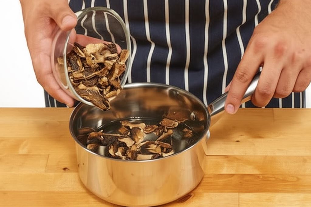 Woda, w której moczyły się suszone grzyby, to prawdziwy skarb kulinarny! Zawiera intensywny aromat i smak grzybów, dlatego stanowi doskonałą bazę do przygotowania sosu. Dodanie do niej odrobiny wina i gotowego sosu pieczeniowego Knorr pozwala uzyskać głęboki, wielowymiarowy smak, który idealnie komponuje się z delikatnym mięsem.