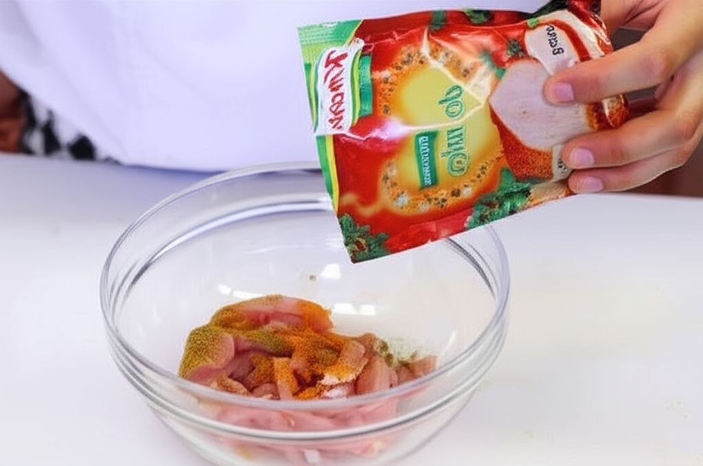 Mięso potnij w paski. Wsyp przyprawę Knorr, zmielony kminek i odłóż na 30 minut.