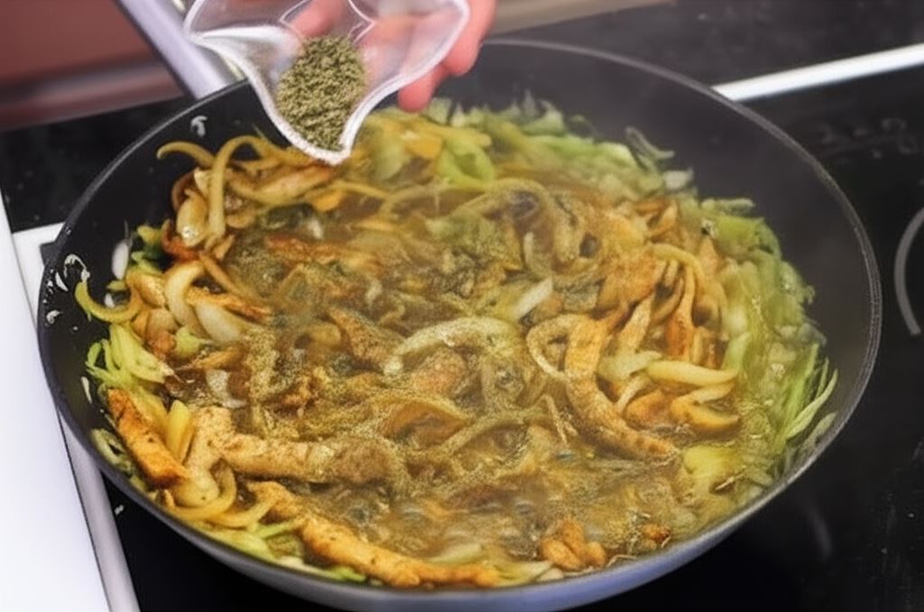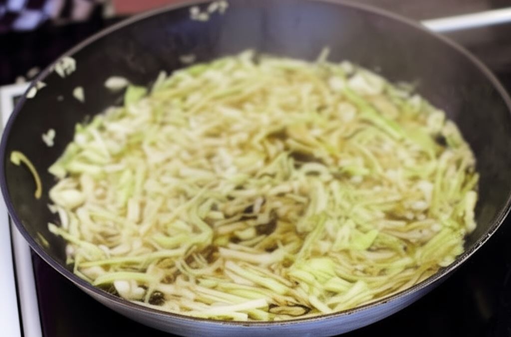 Po usmażeniu, wyciągnij je i dodaj kapustę. Dolej 250 mililitrów wody, wsyp Bulionetkę wołową Knorr i duś przez moment, aż kapusta zmięknie.