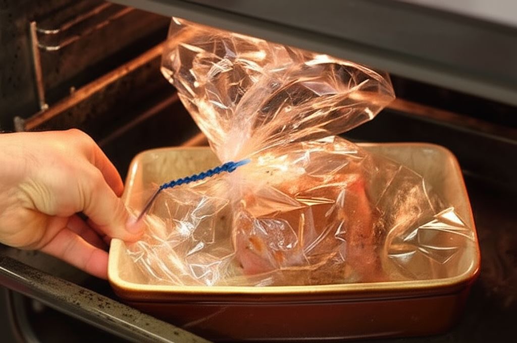 Schab pokryj marynatą, włóż do woreczka do pieczenia i zamknij jego koniec spinką. Wstaw do rozgrzanego piekarnika i piecz w temperaturze 175 stopni przez około 45 minut. Serwuj jako danie gorące lub zimne.