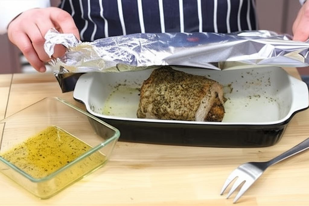Po tym czasie odlej do miseczki wytworzony w trakcie pieczenia sok. Mięso owiń folią spożywczą i odstaw na 10 minut, by nieco ostygło i odparowało. Dzięki temu stanie się bardziej soczyste.
